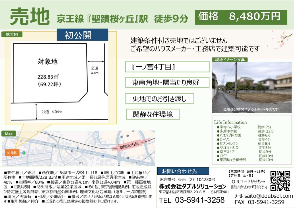 HOME > お知らせ > 新着不動産情報!聖蹟桜ヶ丘駅 売地8,480万円 2026年3月12日 お知らせ 役立つ不動産情報 Twitter Share Pocket Hatena LINE -お知らせ, 役立つ不動産情報 -不動産情報, 売地, 売地8480万円 聖跡桜が丘, 聖蹟桜ヶ丘駅